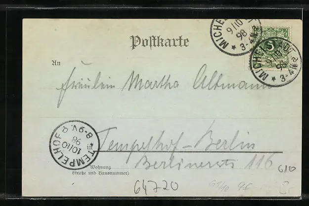 alte Ansichtskarte, gelaufen 1898, guter Zustand