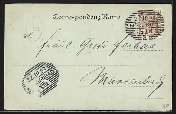 alte Ansichtskarte, gelaufen 1897, Eckknick re. oben, guter Zustand