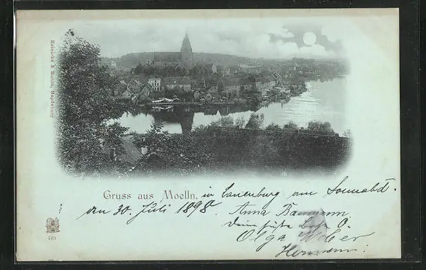 Mondschein-AK Moelln, Ortschaft im Vollmondlicht