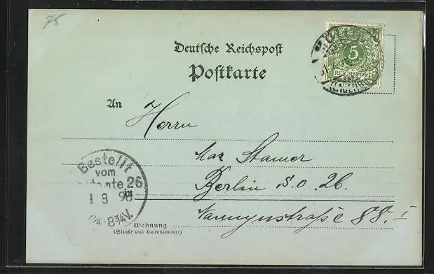 alte Ansichtskarte, gelaufen 1898, guter Zustand