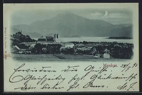 Mondschein-AK Mondsee, Teilansicht mit Kirche