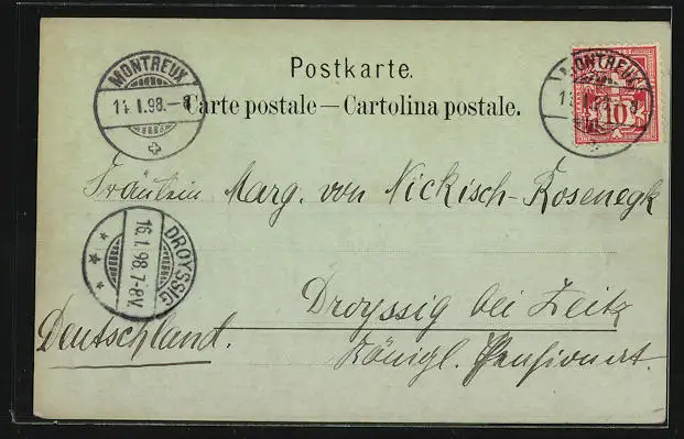 alte Ansichtskarte, gelaufen 1898, guter Zustand