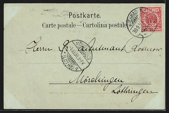alte Ansichtskarte, gelaufen 1898, Eckknick re. oben, guter Zustand