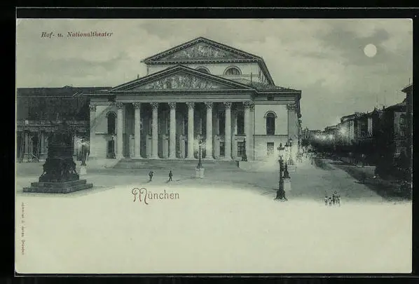 Mondschein-AK München, Ansicht vom Hof- u. Nationaltheater