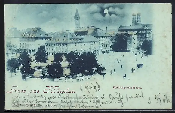 Mondschein-AK München, Ansicht vom Sendlingerthorplatz