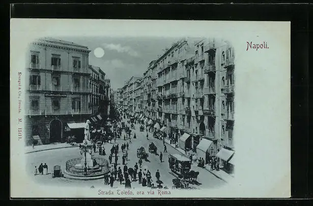 Mondschein-AK Napoli, Strada Toledo, ora via Roma