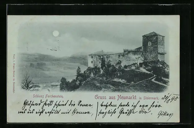 Mondschein-AK Neumarkt in Steiermark, Schloss Forchenstein mit Panorama