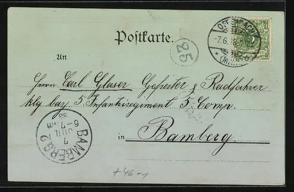alte Ansichtskarte, gelaufen 1898, guter Zustand