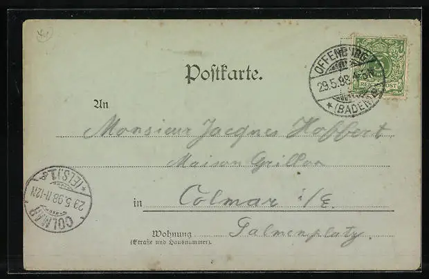 alte Ansichtskarte, gelaufen 1898, guter Zustand