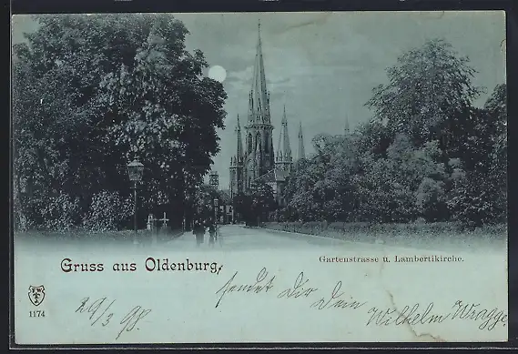 Mondschein-AK Oldenburg / O., Gartenstrasse und Lambertikirche