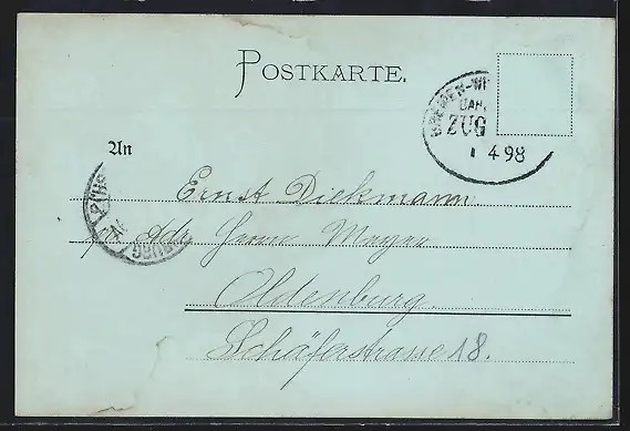 alte Ansichtskarte, gelaufen, Briefmarke entfernt, guter Zustand