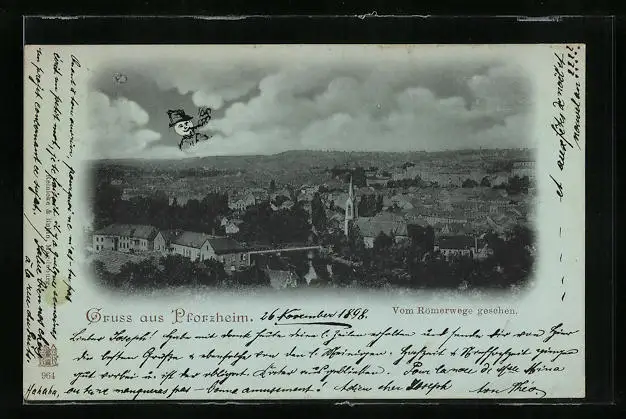 Mondschein-AK Pforzheim, Totalansicht vom Römerwege gesehen