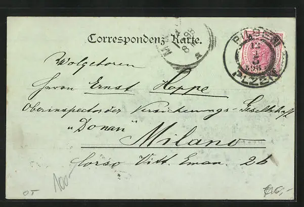 gelaufen 1898, Eckknick li. oben, Stempelspur, guter Zustand