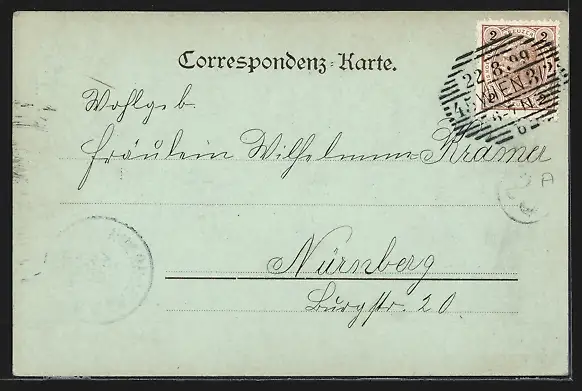 alte Ansichtskarte, gelaufen 1899, Stempelspur, guter Zustand