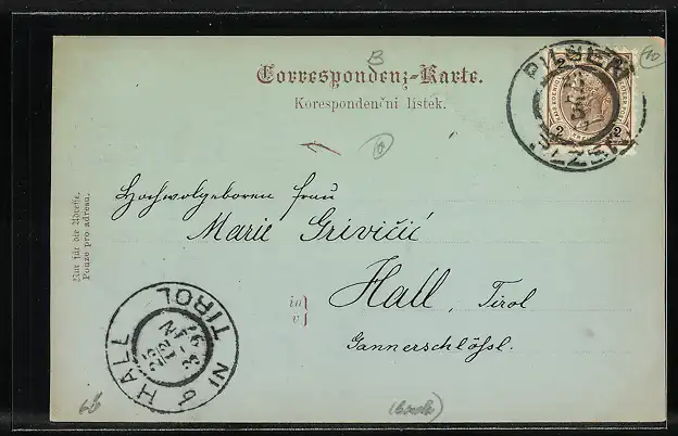 gelaufen 1897, Eckknick re. oben, guter Zustand