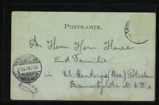 alte Ansichtskarte, gelaufen, Briefmarke entfernt, guter Zustand