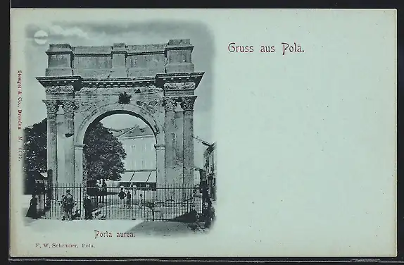 Mondschein-AK Pola, Porta aurea