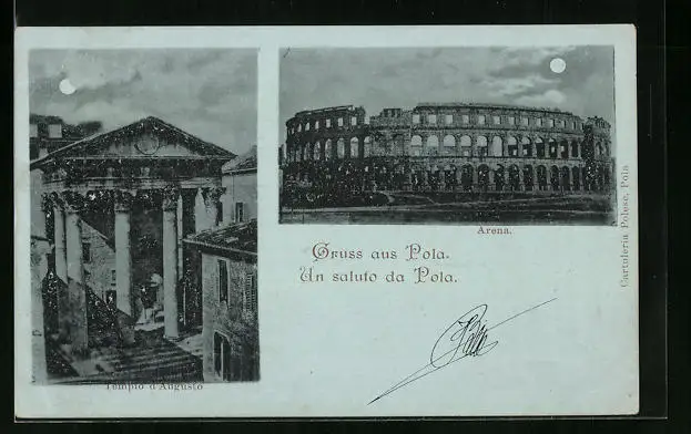 Mondschein-AK Pola, Tempio d`Augusto, Arena