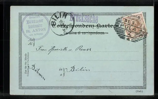 gelaufen 1901, Bugspuren oben li., Eckknick unten re., guter Zustand