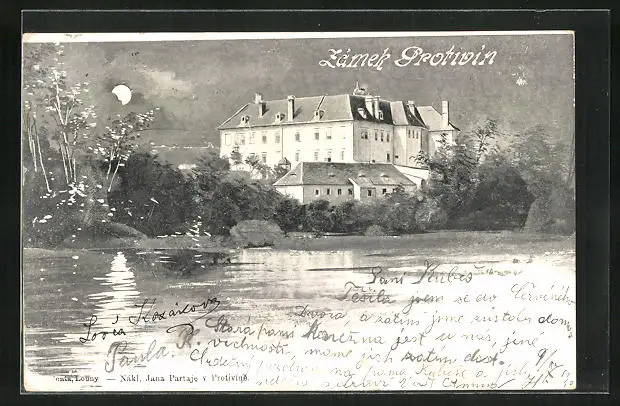 Mondschein-AK Protivin, Flusspartie mit Schloss