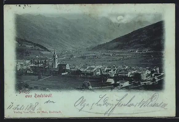 Mondschein-AK Radstadt, Ortsansicht aus der Vogelschau
