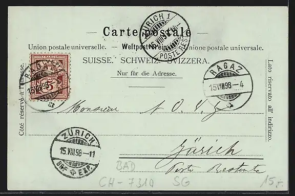 alte Ansichtskarte, gelaufen 1898, guter Zustand