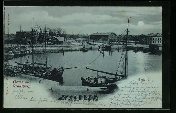 Mondschein-AK Rendsburg, Partie an der Schleuse