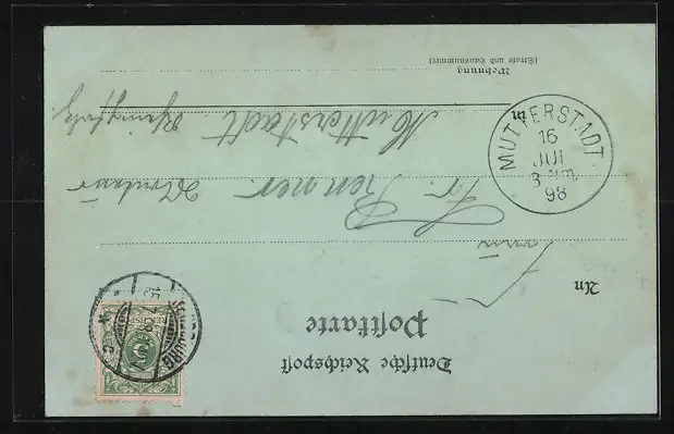 alte Ansichtskarte, gelaufen 1898, Eckknick re. unten, guter Zustand