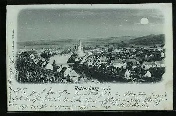 Mondschein-AK Rottenburg a. N., Totalansicht