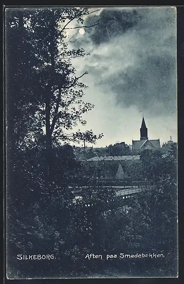 Mondschein-AK Silkeborg, Aften paa Smedebakken