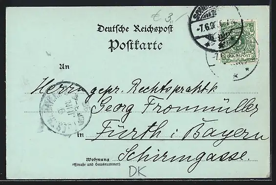 alte Ansichtskarte, gelaufen 1898, guter Zustand