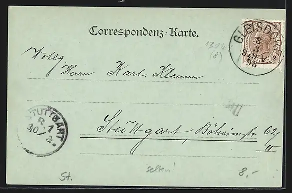 alte Ansichtskarte, gelaufen 1898, guter Zustand