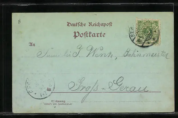 alte Ansichtskarte, gelaufen 1898, Eckknick oben li., guter Zustand