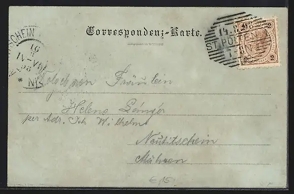 alte Ansichtskarte, gelaufen 1898, Stempelspur, guter Zustand