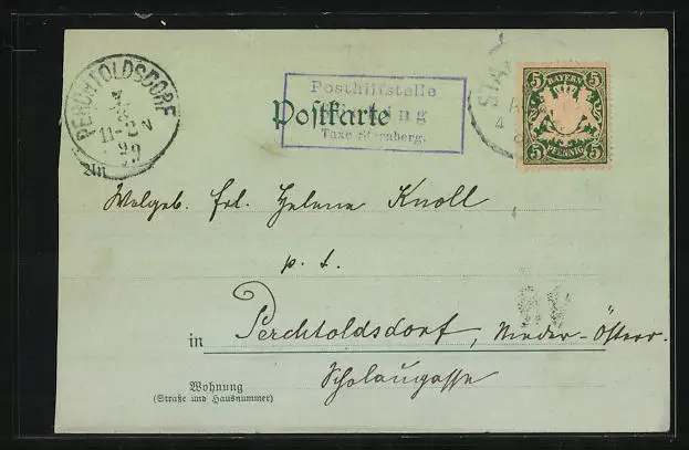 alte Ansichtskarte, gelaufen 1898, rechte Kante beschnitten
