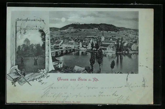Mondschein-AK Stein a. Rh., Totalansicht mit Schloss Hohenklingen