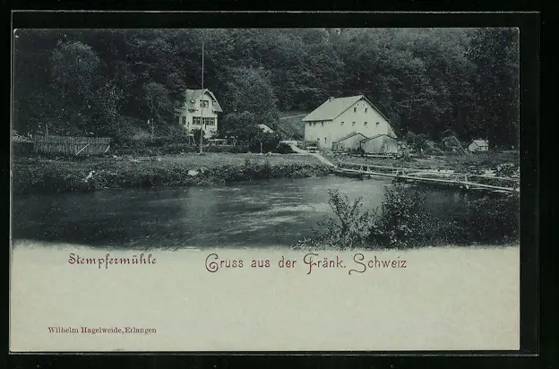 Mondschein-AK Stempfermühle /Fränk. Schweiz, Uferpartie