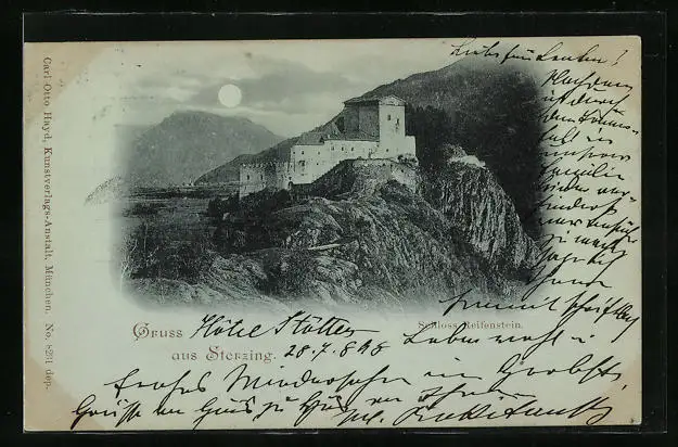 Mondschein-AK Sterzing, am Schloss Reifenstein