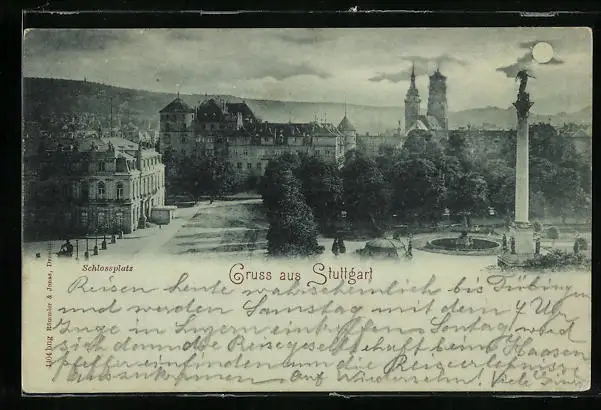 Mondschein-AK Stuttgart, Strassenpartie am Schlossplatz