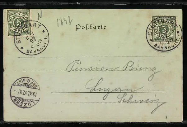 gelaufen 1897, Eckknick unten re., guter Zustand