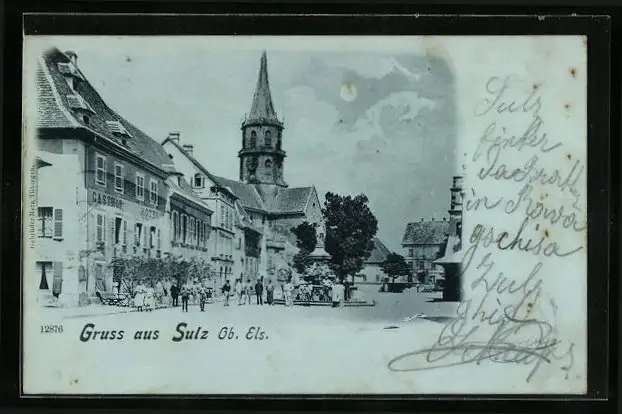 Mondschein-AK Sulz, Gasthof am Marktplatz