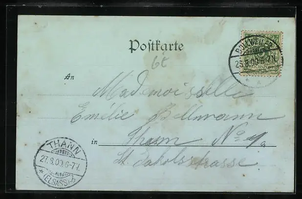 alte Ansichtskarte, gelaufen 1900, guter Zustand