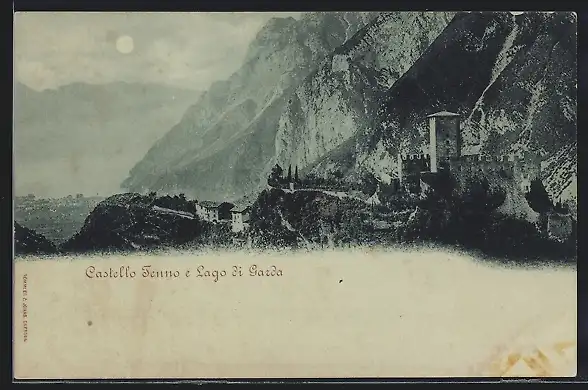Mondschein-AK Tenno /Lago di Garda, Castello Tenno