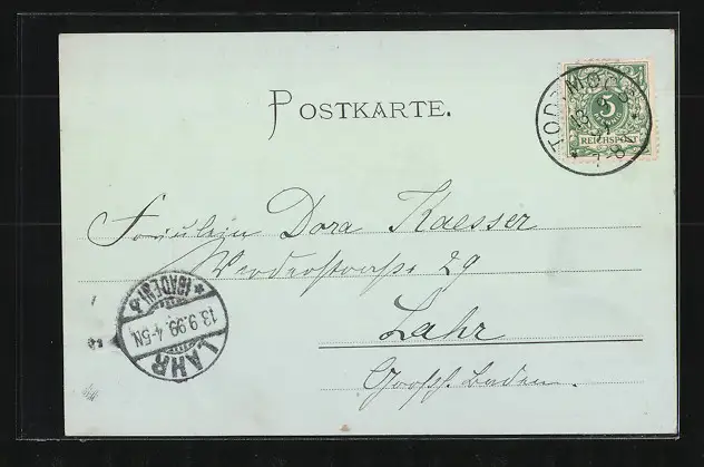 alte Ansichtskarte, gelaufen 1899, guter Zustand