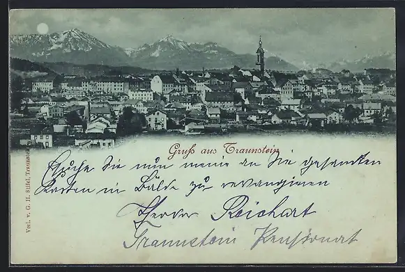 Mondschein-AK Traunstein, Teilansicht
