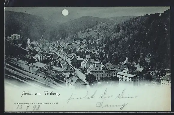 Mondschein-AK Triberg, Teilansicht mit Strassenpartie