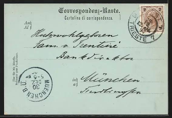 Mondschein-AK Triest, Ausblick von der Villa Cambiaggio