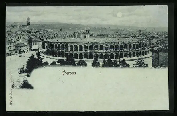 Mondschein-AK Verona, Panorama mit Amphitheater