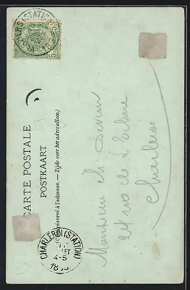 alte Ansichtskarte, gelaufen 1899, rückseitig Klebe- und Papierreste, guter Zustand