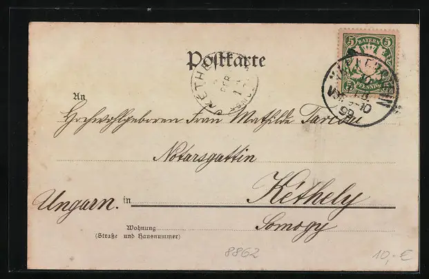 alte Ansichtskarte, gelaufen 1899, Bugspur re. oben, Stempelspur, guter Zustand